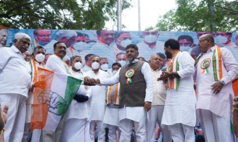 ವಿಪಕ್ಷ ನಾಯಕ ಸಿದ್ದರಾಮಯ್ಯ, ಕೆಪಿಸಿಸಿ ಅಧ್ಯಕ್ಷ ಡಿ ಕೆ ಶಿವಕುಮಾರ್ ಸಮ್ಮುಖದಲ್ಲಿ ಸಿ.ಎಸ್.ದ್ವಾರಕನಾಥ್ ಅವರು ಕಾಂಗ್ರೆಸ್ ಬಾವುಟ ಹಿಡಿದರು.