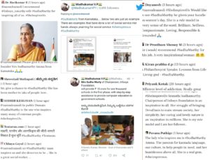 ಕನ್ನಡದ ಮಹಿಳಾ ಸಾಧಕಿ ಇನ್ಫೋಸಿಸ್ ಪ್ರತಿಷ್ಠಾನದ ಸಂಸ್ಥಾಪಕಿ ಸುಧಾಮೂರ್ತಿ ಅವರ ಹೆಸರು #SheInspiresUs ಎಂಬ ಹ್ಯಾಶ್ ಟ್ಯಾಗ್ ನಲ್ಲಿ ಬಹಳಷ್ಟು ಟ್ರೆಂಡ್ ಆಗಿದ್ದು, ಸುಧಾಮೂರ್ತಿ ಅವರ ಸಾಮಾಜಿಕ ಸೇವೆ, ಸರಳತೆ, ಸಾಧನೆ ಲಕ್ಷಾಂತರ ಜನರಿಗೆ ಸ್ಫೂರ್ತಿ ನೀಡಿವೆ. ಹೀಗಾಗಿ ಅವರು ನಿಮ್ಮ ಸಾಮಾಜಿಕ ಜಾಲತಾಣಗಳ ಖಾತೆಗಳನ್ನು ಬಳಸುವ ಅರ್ಹತೆ ಹೊಂದಿದ್ದಾರೆ ಎಂದು ನೆಟ್ಟಿಗರು ಪ್ರಧಾನಿಯವರಲ್ಲಿ ಮನವಿ ಮಾಡಿದ್ದಾರೆ.