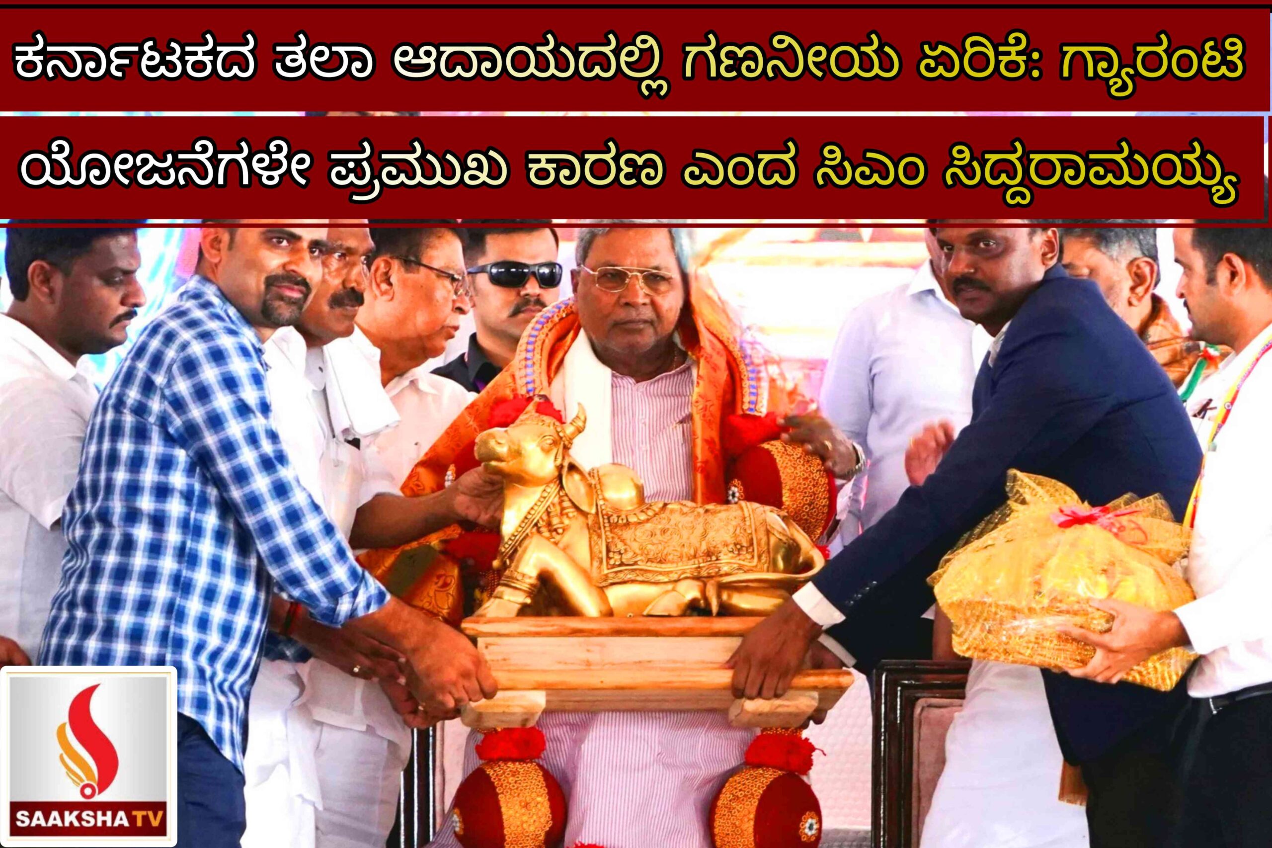 ಹಾಸನ: ಕರ್ನಾಟಕ ರಾಜ್ಯವು ತಲಾ ಆದಾಯದಲ್ಲಿ ಇಡೀ ದೇಶದಲ್ಲೇ ನಂಬರ್ ಒನ್ ಸ್ಥಾನ ಪಡೆದಿದೆ ಎಂದು ಮುಖ್ಯಮಂತ್ರಿ ಸಿದ್ದರಾಮಯ್ಯ ಶನಿವಾರ ಘೋಷಿಸಿದ್ದಾರೆ. ಅರಸೀಕೆರೆ ವಿಧಾನಸಭಾ ಕ್ಷೇತ್ರದಲ್ಲಿ ವಿವಿಧ ಅಭಿವೃದ್ಧಿ ಕಾರ್ಯಗಳ ಉದ್ಘಾಟನೆ ಮತ್ತು ಶಂಕುಸ್ಥಾಪನೆ ನೆರವೇರಿಸಿದ ಬಳಿಕ ಮಾತನಾಡಿದ ಅವರು, ಈ ಪ್ರಗತಿಗೆ ರಾಜ್ಯ ಸರ್ಕಾರದ ಮಹತ್ವಾಕಾಂಕ್ಷೆಯ ಗ್ಯಾರಂಟಿ ಯೋಜನೆಗಳೇ ಪ್ರಮುಖ ಕಾರಣ ಎಂದು ಪ್ರತಿಪಾದಿಸಿದರು.