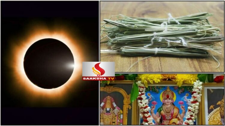 ಸೂರ್ಯಗ್ರಹಣದ ಮೊದಲು, ನೀವು ನಿಮ್ಮ ಮನೆಯ ನೀರು ಮತ್ತು ಆಹಾರ ಪದಾರ್ಥಗಳಲ್ಲಿ ಸ್ವಲ್ಪ ದರ್ಬೆ ಹುಲ್ಲು ಅಥವಾ ಕಪ್ಪು ತುಳಸಿ ಎಲೆಗಳನ್ನು ಹಾಕಬೇಕು.