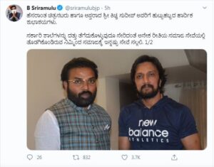 ಇನ್ನೂ ಆರೋಗ್ಯ ಸಚಿವರಾದ ಶ್ರೀರಾಮುಲು ಅವರು ಸಹ ಟ್ವೀಟ್ ಮಾಡಿದ್ದು, “ ಹೆಸರಾಂತ ಚಿತ್ರನಟರು ಹಾಗೂ ಆಪ್ತರಾದ ಶ್ರೀ ಕಿಚ್ಚ ಸುದೀಪ್ ಅವರಿಗೆ ಹುಟ್ಟುಹಬ್ಬದ ಹಾರ್ದಿಕ ಶುಭಾಶಯಗಳು. ಸರ್ಕಾರಿ ಶಾಲೆಗಳನ್ನು ದತ್ತು ತೆಗೆದುಕೊಳ್ಳುವುದೂ ಸೇರಿದಂತೆ ಅನೇಕ ರೀತಿಯ ಸಮಾಜ ಸೇವೆಯಲ್ಲಿ ತೊಡಗಿಕೊಂಡಿರುವ ನಿಮ್ಮಿಂದ ಸಮಾಜಕ್ಕೆ ಇನ್ನಷ್ಟು ಸೇವೆ ಸಲ್ಲಲಿ “ ಎಂದು ಕಿಚ್ಚನಿಗೆ ಶುಭಕೋರಿದ್ದಾರೆ.