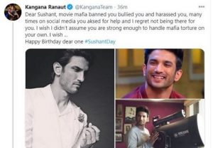 ಸುಶಾಂತ್ ಸಾವಿನ ಪ್ರಕರಣದ ನಂತರದಿಂದಲೂ ಈ ಪ್ರಕರಣಕ್ಕೆ ಅನೇಕರನ್ನ ಹೊಣೆಯಾಗಿಸಿಜಕೊಂಡು ರಾಜಕಾರಣಿಗಳು ಸಿನಿಮಾರಂಗದ ದೊಡ್ಡ ದೊಡ್ಡ ಮಂದಿ ವಿರುದ್ಧ ಆರೋಪ ಮಾಡುತ್ತಲೇ ಸುದ್ದಿಯಲ್ಲಿದ್ದ ನಟಿ ಅಂದ್ರೆ ಅದು ಕಂಗನಾ ರಣಾವತ್. ಅವರು ಸಹ ಟ್ವೀಟ್ ಮಾಡಿದ್ದು, ‘ಆತ್ಮೀಯ ಸುಶಾಂತ್, ಮೂವಿ ಮಾಫಿಯಾ ನಿಮ್ಮನ್ನು ಬ್ಯಾನ್ ಮಾಡಿತ್ತು ಮತ್ತು ತುಂಬಾ ಕಿರುಕುಳ ನೀಡಿದೆ. ಸಾಮಾಜಿಕ ಜಾಲತಾಣದಲ್ಲಿ ನೀವು ಅನೇಕ ಬಾರಿ ಸಹಾಯ ಕೇಳಿದ್ದೀರಿ. ನಿಮಗಾಗಿ ಇಲ್ಲದಿರುವುದಕ್ಕೆ ವಿಷಾದಿಸುತ್ತೇನೆ. ಮಾಫಿಯಾ ನೀಡಿದ ಹಿಂಸೆಯನ್ನು ನಿಭಾಯಿಸಲು ನೀವು ಸಾಕಷ್ಟು ಕಷ್ಟಪಟ್ಟಿದ್ದೀರಿ. ಹುಟ್ಟುಹಬ್ಬದ ಶುಭಾಶಯಗಳು’ ಎಂದು ಹೇಳಿದ್ದಾರೆ.