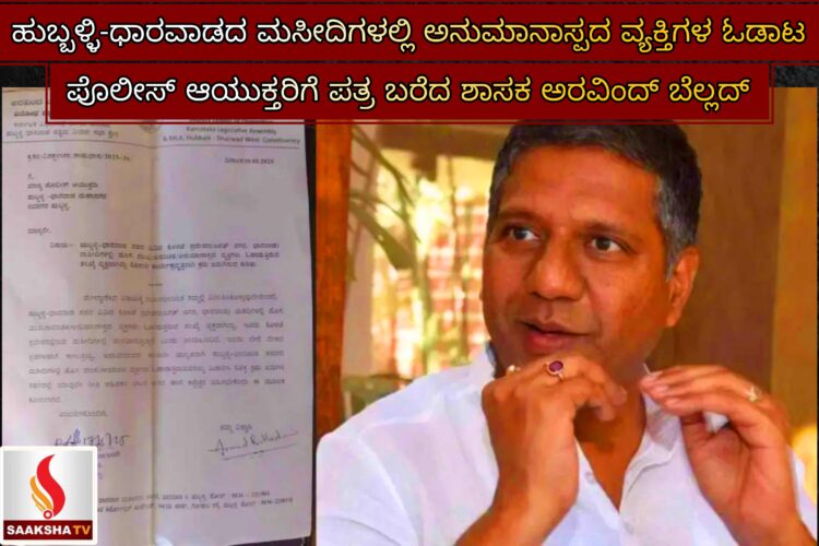 ಹುಬ್ಬಳ್ಳಿ-ಧಾರವಾಡದ ಕೆಲ ಮಸೀದಿಗಳಲ್ಲಿ ಅಪರಿಚಿತ ಹಾಗೂ ಅನುಮಾನಾಸ್ಪದ ವ್ಯಕ್ತಿಗಳ ಓಡಾಟದ ಕುರಿತು ಬಿಜೆಪಿ ಶಾಸಕ ಅರವಿಂದ್ ಬೆಲ್ಲದ್ ಅವರು ಗಂಭೀರ ಆತಂಕ ವ್ಯಕ್ತಪಡಿಸಿದ್ದಾರೆ. ಈ ಕುರಿತು ಅವರು ಹುಬ್ಬಳ್ಳಿ-ಧಾರವಾಡ ಪೊಲೀಸ್ ಆಯುಕ್ತ ಎನ್. ಶಶಿಕುಮಾರ್ ಅವರಿಗೆ ಪತ್ರ ಬರೆದು, ತಕ್ಷಣ ಕ್ರಮ ಕೈಗೊಳ್ಳುವಂತೆ ಮನವಿ ಮಾಡಿದ್ದಾರೆ .