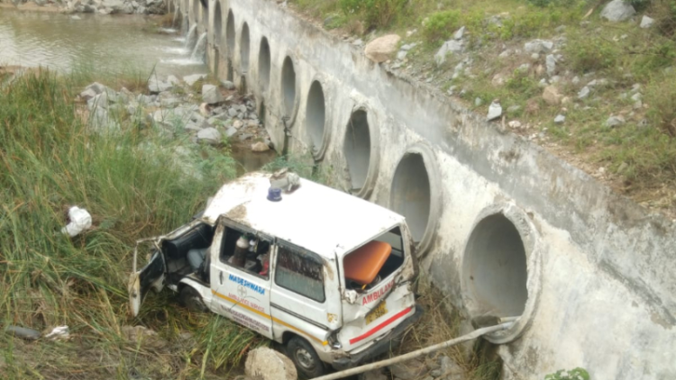 ಶವ ಸಾಗಿಸುತ್ತಿದ್ದ ಆಂಬುಲೆನ್ಸ್ ಪಲ್ಟಿ!