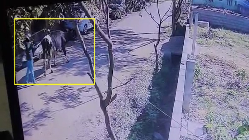 ಹೆಲ್ಮೆಟ್ ಧರಸಿ ಬಂದಿದ್ದ ಆಗುಂತಕನೊಬ್ಬ 2 ಲಕ್ಷ ರೂ. ಮೌಲ್ಯದ ಮೂರು ಹಸುಗಳನ್ನು ಕಳ್ಳತನ ಮಾಡಿ ಪರಾರಿಯಾಗಿದ್ದಾನೆ. ಕಳ್ಳನ ಕೈಚಳಕದ ದೃಶ್ಯ ಸಿಸಿಟಿವಿಯಲ್ಲಿ (CCTV) ಸೆರೆಯಾಗಿದೆ.