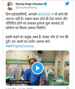 ಕೋವಿಡ್-19 ಗೆ ಭಯಪಡುವ ಅಗತ್ಯವಿಲ್ಲ – ಆಸ್ಪತ್ರೆಯಿಂದ ಮಧ್ಯ ಪ್ರದೇಶ ಸಿಎಂ ಚೌಹಾನ್ ಸಂದೇಶ