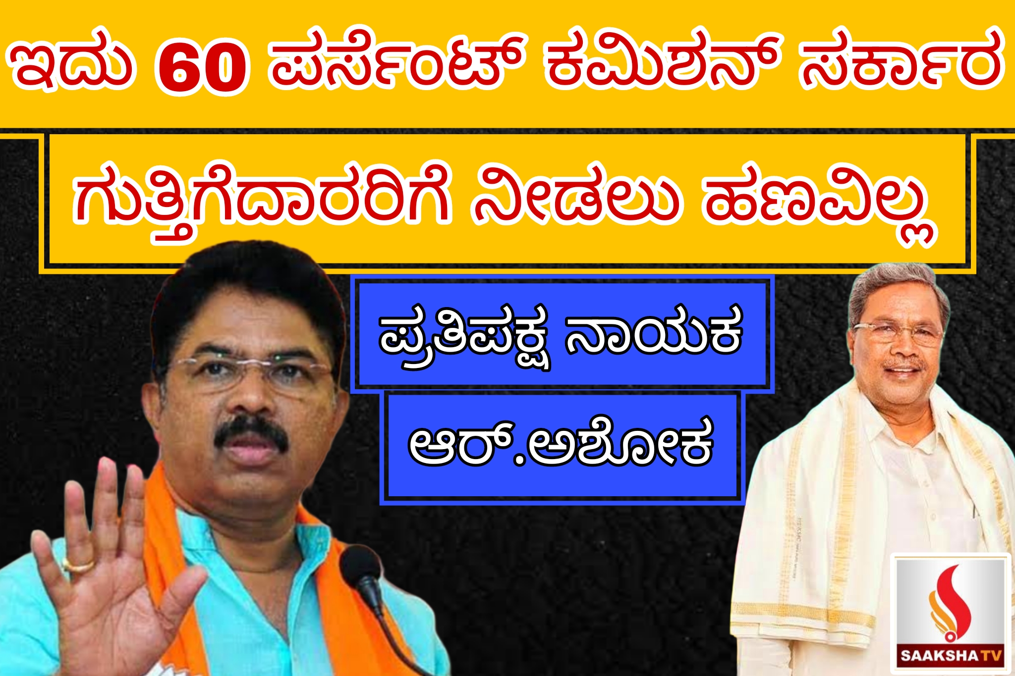 ಬೆಂಗಳೂರು, ಜ.7 :ಸಿಎಂ ಸಿದ್ದರಾಮಯ್ಯ ಅವರ ನೇತೃತ್ವದ ಸರ್ಕಾರ ಪಕ್ಕಾ 60 ಪರ್ಸೆಂಟ್ ಕಮಿಶನ್ ಸರ್ಕಾರ. ಕಾಂಗ್ರೆಸ್ನ ಆಡಳಿತದಿಂದಾಗಿ ರಾಜ್ಯದ ದಿವಾಳಿಯ ಕಡೆಗೆ ಸಾಗುತ್ತಿದೆ ಎಂದು ಪ್ರತಿಪಕ್ಷ ನಾಯಕ ಆರ್.ಅಶೋಕ ಆಕ್ರೋಶ ವ್ಯಕ್ತಪಡಿಸಿದರು.