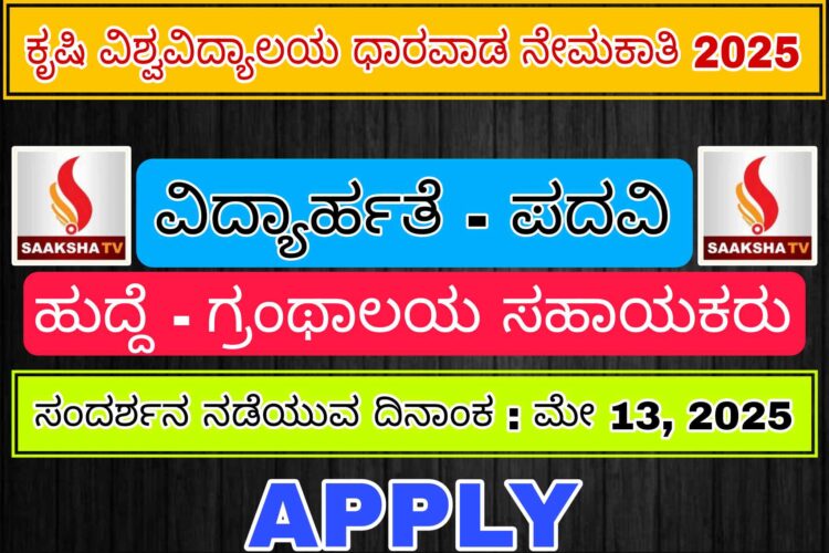 ಕೃಷಿ ವಿಶ್ವವಿದ್ಯಾಲಯ ಧಾರವಾಡ ನೇಮಕಾತಿ 2025