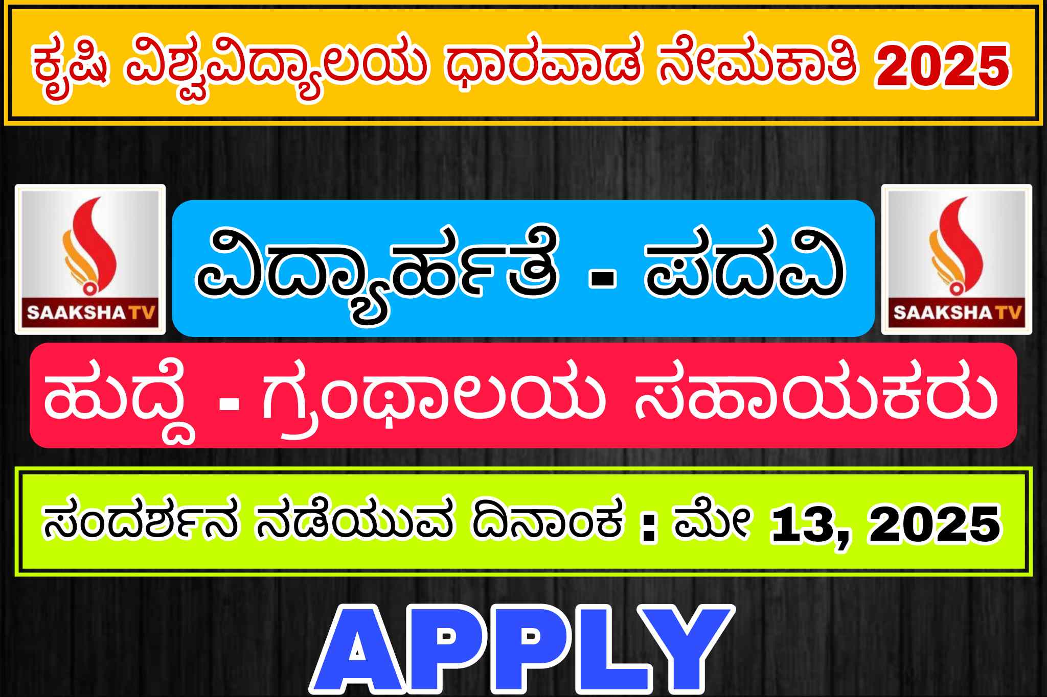 ಸಂದರ್ಶನ ನಡೆಯುವ ದಿನಾಂಕ : ಮೇ 13, 2025, ಮುಂಜಾನೆ 11.00 ಗಂಟೆಗೆ