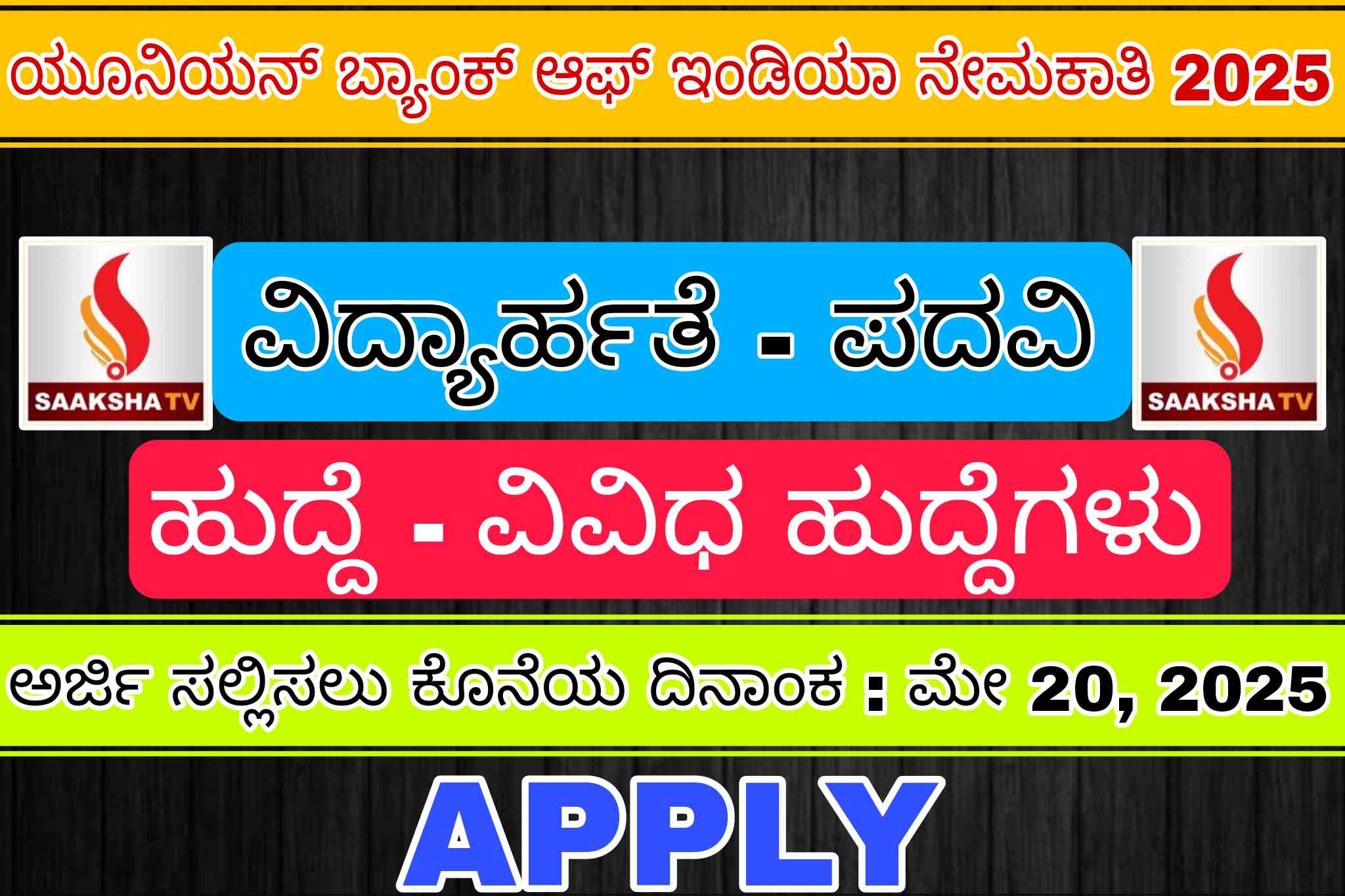 ಯೂನಿಯನ್ ಬ್ಯಾಂಕ್ ಆಫ್ ಇಂಡಿಯಾದಲ್ಲಿ ಅಗತ್ಯವಿರುವ ಸ್ಪೆಷಲಿಸ್ಟ್ ಆಫೀಸರ್ ಹುದ್ದೆಗಳ ಭರ್ತಿಗೆ ಅರ್ಹ ಹಾಗೂ ಆಸಕ್ತ ಅಭ್ಯರ್ಥಿಗಳಿಂದ ಅರ್ಜಿ ಆಹ್ವಾನಿಸಲಾಗಿದೆ.