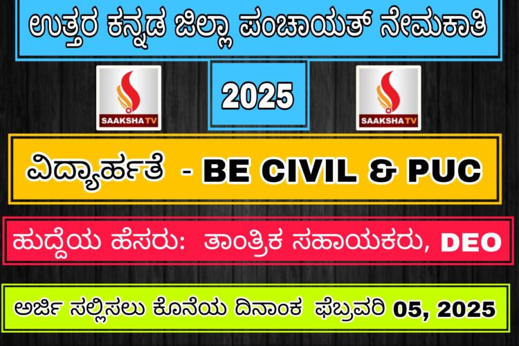 Uttara Kannada Zilla Panchayat Recruitment 2025 : ಉತ್ತರ ಕನ್ನಡ ಜಿಲ್ಲೆಯಲ್ಲಿ ಮಹಾತ್ಮ ಗಾಂಧಿ ರಾಷ್ಟ್ರೀಯ ಗ್ರಾಮೀಣ ಉದ್ಯೋಗ ಖಾತರಿ ಯೋಜನೆಯಡಿ ಖಾಲಿ ಇರುವ ವಿವಿಧ ಹುದ್ದೆಗಳ ಭರ್ತಿ ಮಾಡಿಕೊಳ್ಳಲು ಅರ್ಹ ಹಾಗೂ ಆಸಕ್ತ ಅಭ್ಯರ್ಥಿಗಳಿಂದ ಅರ್ಜಿ ಆಹ್ವಾನಿಸಲಾಗಿದೆ.