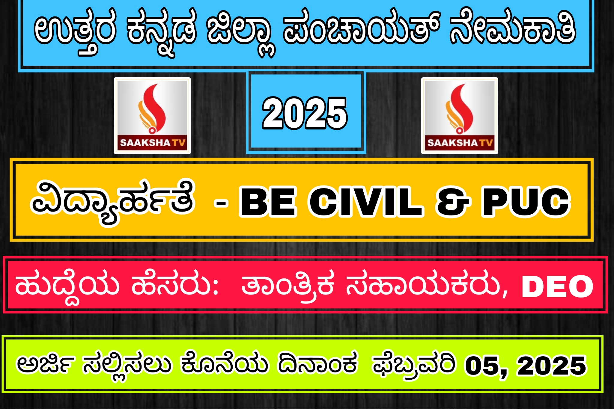 ಅರ್ಜಿ ಸಲ್ಲಿಕೆಗೆ ಕೊನೆಯ ದಿನಾಂಕ : ಫೆಬ್ರವರಿ 05, 2025