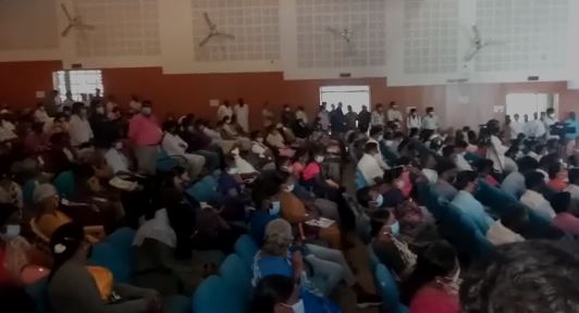 ಆದ್ರೆ ಕಾರ್ಯಕ್ರಮದಲ್ಲಿ ಮಾತ್ರ ಯಾವುದೇ ಕೋವಿಡ್ ನಿಯಮಗಳನ್ನು ಪಾಲಿಸಿಯೇ ಇಲ್ಲ.