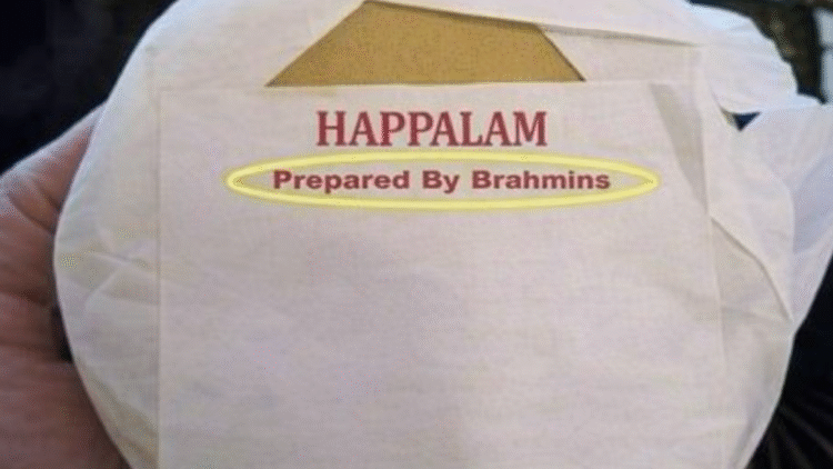 ಕಾರ್ತಿಕ್ ನಾರಾಯಣ್ ಬಟ್ಟುಲಾ ಎಂಬ ವಕೀಲರು ಸಾಮಾಜಿಕ ಜಾಲತಾಣದಲ್ಲಿ ಹಂಚಿಕೊಂಡ ಒಂದು ಫೋಟೋ ಈಗ ಈ ಎಲ್ಲಾ ರಾದ್ಧಾಂತಕ್ಕೆ ಕಾರಣವಾಗಿದೆ. ಆ ಫೋಟೋದಲ್ಲಿರುವ ಹಪ್ಪಳದ ಪ್ಯಾಕೆಟ್ ಮೇಲೆ ಇಂಗ್ಲಿಷ್ ನಲ್ಲಿ ಸ್ಪಷ್ಟವಾಗಿ Happalam prepared by Brahmins (ಬ್ರಾಹ್ಮಣರು ತಯಾರಿಸಿದ ಹಪ್ಪಳ) ಎಂದು ಬರೆಯಲಾಗಿತ್ತು. ಇದನ್ನು ಕಂಡೊಡನೆ ಕೆಂಡಾಮಂಡಲವಾದ ವಕೀಲರು, ಆಹಾರದ ವಿಷಯದಲ್ಲಿ ಜಾತಿಯನ್ನು ತರುವ ಅಗತ್ಯವೇನಿತ್ತು ಎಂದು ಪ್ರಶ್ನಿಸಿದ್ದಾರೆ. ಇದು ಕೇವಲ ಬರವಣಿಗೆಯಲ್ಲ, ಬದಲಾಗಿ ನಾವು ಶ್ರೇಷ್ಠರು, ನಮ್ಮ ಕೈಯ ಅಡುಗೆಯೇ ಶುದ್ಧ ಎಂಬ ಅಹಂಕಾರದ ಪ್ರದರ್ಶನ. ಸಮಾಜದಲ್ಲಿ ಜಾತಿಯ ವಿಷಬೀಜ ಬಿತ್ತುವ ಕೆಲಸವಿದು ಎಂದು ಅವರು ಆಕ್ರೋಶ ವ್ಯಕ್ತಪಡಿಸಿದ್ದರು. ಈ ಪೋಸ್ಟ್ ಕ್ಷಣಾರ್ಧದಲ್ಲಿ ವೈರಲ್ ಆಗಿದ್ದು, ನೂರಾರು ಮಂದಿ ಇದನ್ನು ಬೆಂಬಲಿಸಿ ಕಮೆಂಟ್ ಮಾಡಿದ್ದರು.