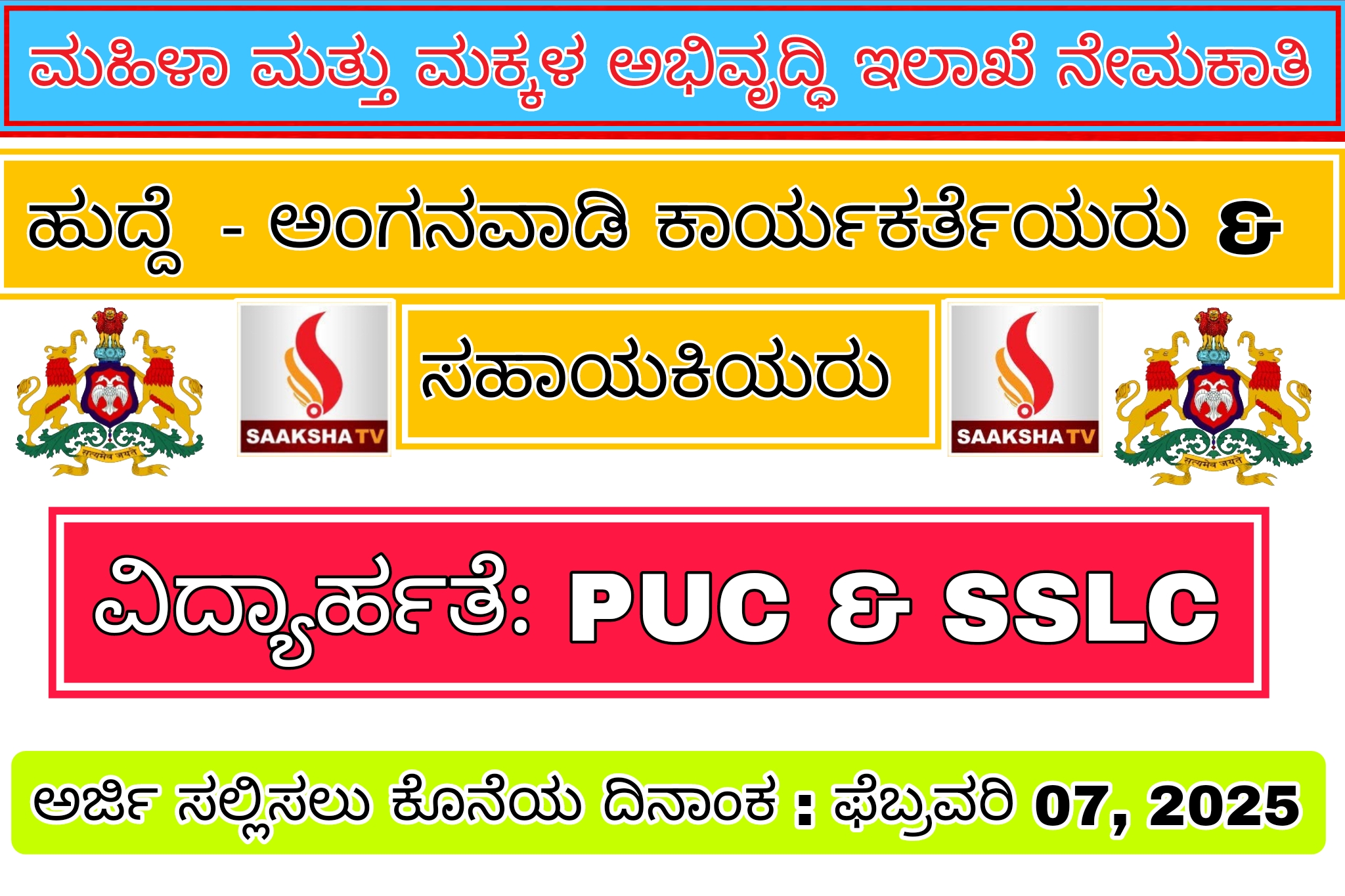 ಮಹಿಳಾ ಮತ್ತು ಮಕ್ಕಳ ಅಭಿವೃದ್ಧಿ ಇಲಾಖೆ ನೇಮಕಾತಿ 2025
