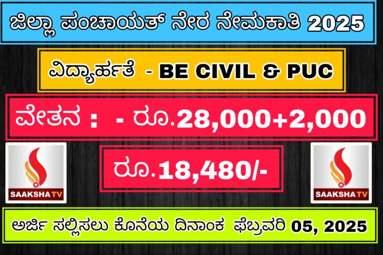 Uttara Kannada Zilla Panchayat Recruitment 2025 Apply Online – ಉತ್ತರ ಕನ್ನಡ ಜಿಲ್ಲೆಯಲ್ಲಿ ಮಹಾತ್ಮ ಗಾಂಧಿ ರಾಷ್ಟ್ರೀಯ ಗ್ರಾಮೀಣ ಉದ್ಯೋಗ ಖಾತರಿ ಯೋಜನೆಯಡಿ ಖಾಲಿ ಇರುವ ವಿವಿಧ ಹುದ್ದೆಗಳ ಭರ್ತಿ ಮಾಡಿಕೊಳ್ಳಲು ಅರ್ಹ ಹಾಗೂ ಆಸಕ್ತ ಅಭ್ಯರ್ಥಿಗಳಿಂದ ಅರ್ಜಿ ಆಹ್ವಾನಿಸಲಾಗಿದೆ. ಆಸಕ್ತ ಮತ್ತು ಅರ್ಹ ಅಭ್ಯರ್ಥಿಗಳು ಸದರಿ ಹುದ್ದೆಗಳಿಗೆ ಅರ್ಜಿ ಸಲ್ಲಿಸಲು ನಿಗದಿಪಡಿಸಿದ ದಿನಾಂಕದೊಳಗೆ ಅರ್ಜಿ ಸಲ್ಲಿಸಿ , ಈ ಹುದ್ದೆಗಳಿಗೆ ಅಗತ್ಯವಿರುವ ವಿದ್ಯಾರ್ಹತೆ,(Qualification) ವೇತನ ಶ್ರೇಣಿ, (Salary) ವಯೋಮಿತಿ, (Age Limit) ಅರ್ಜಿ ಶುಲ್ಕ,( Application Fees ) ಹುದ್ದೆಗಳ ವಿವರ, ಇತರೆ ಎಲ್ಲಾ ಮಾಹಿತಿ ಕೆಳಗೆ ವಿವರಿಸಲಾಗಿದೆ, ಅಭ್ಯರ್ಥಿಗಳು ಅರ್ಜಿ ಸಲ್ಲಿಸುವ ಮುನ್ನ ಅಧಿಸೂಚನೆ (Notification) ಓದಿ ನಂತರ ಅರ್ಜಿ ಸಲ್ಲಿಸಿ.